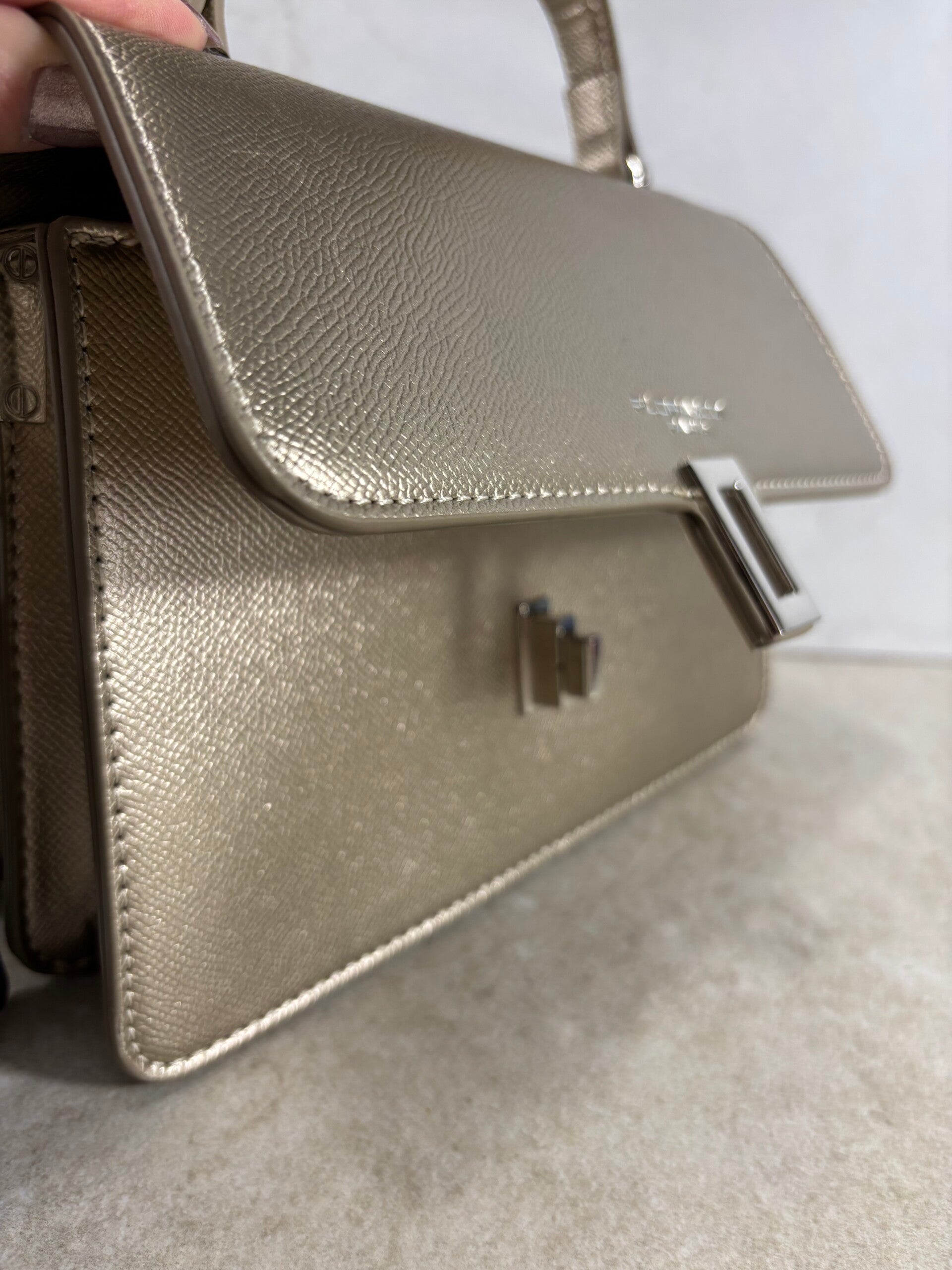 Porté à la main grâce à sa poignée rigide ou en bandoulière pour plus de liberté, il accompagne aussi bien une tenue quotidienne chic qu’une soirée habillée.